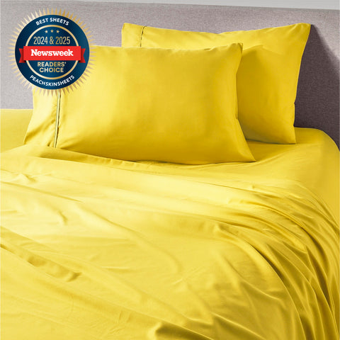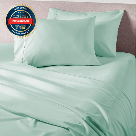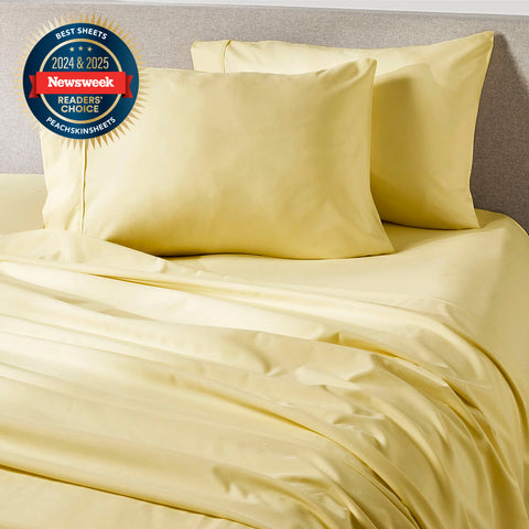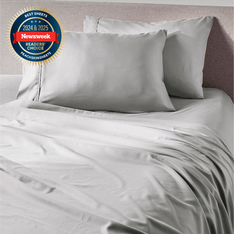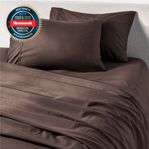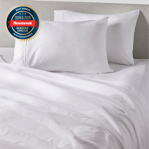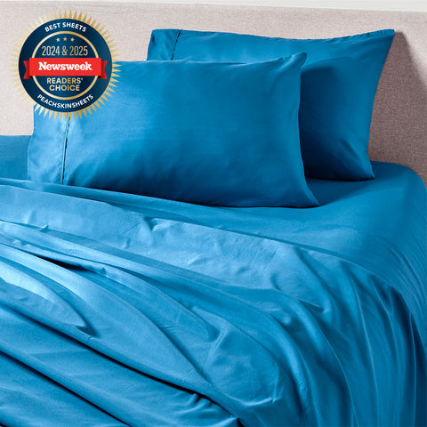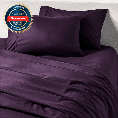 The Original PeachSkinSheets® Breathable Sheet Sets include one Fitted Sheet, one Flat Sheet, and two Pillowcases with European Envelope Closures. They feature the ultra-soft luxurious feel of 1500 threads per square inch. They are made of a high performance, athletic grade Smart Fabric designed to wick away moisture while regulating cool and warm body temperatures for a superior sleep experience. Fitted sheets are deep pocket with elastic all the way around and fit up to 18" thick mattresses such as memory foam, custom number and double pillow top.